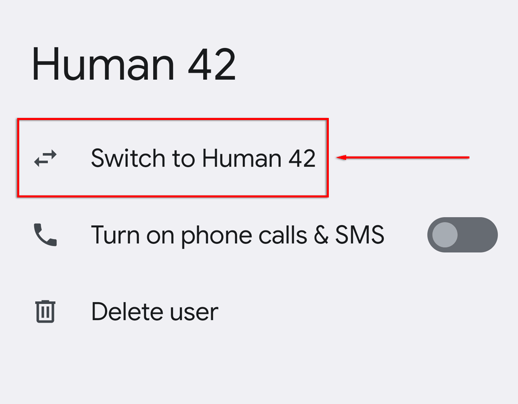 - 輕敲切換到...對於您想要切換到的不同用戶。