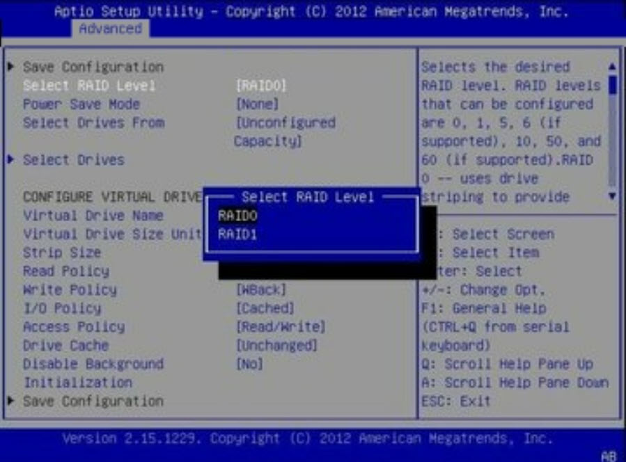 3. 然後,打開固件 RAID 實用程序並使用兩個驅動器創建 RAID 1 陣列。