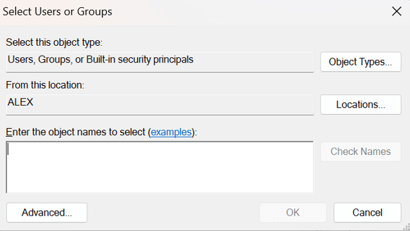 第5步:查找“輸入要選擇的對象名稱”選項並輸入“管理員”。