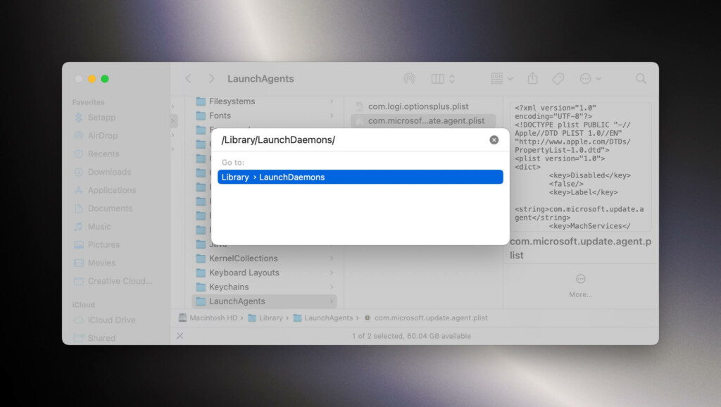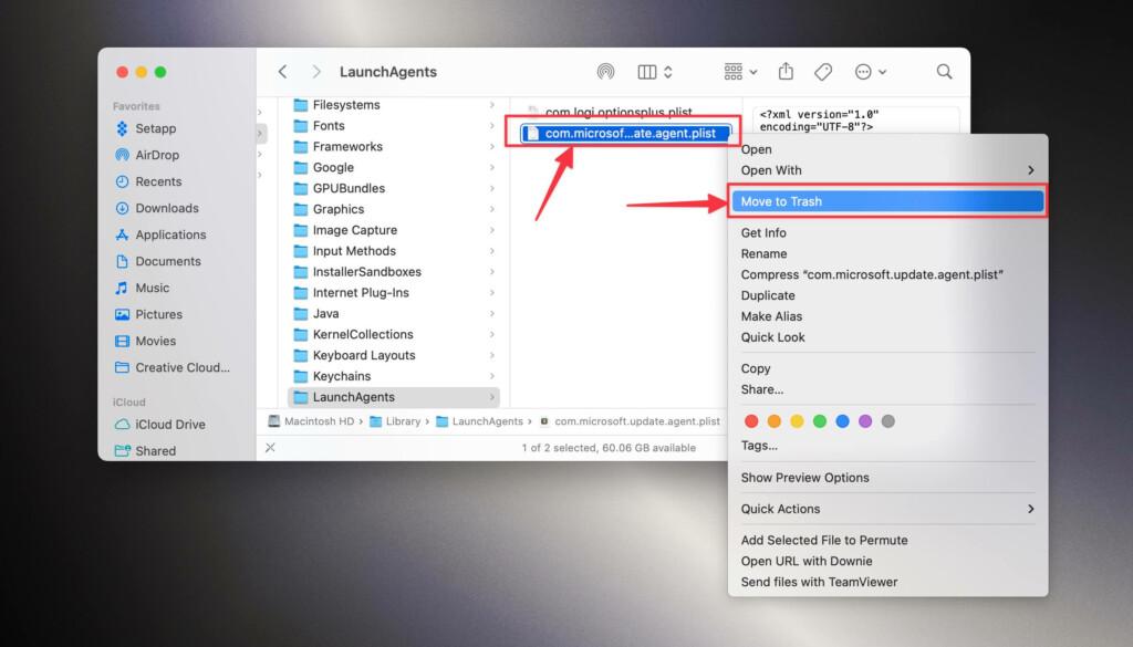 8.右鍵單擊com.microsoft.update.agent.plist文件並選擇移至垃圾箱。