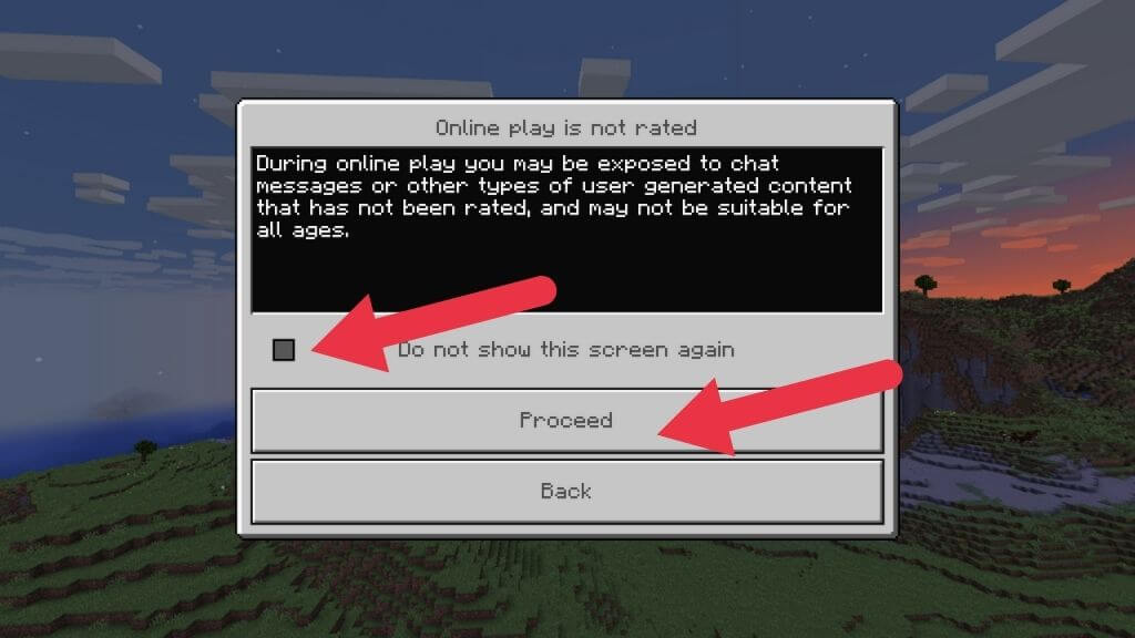 - 等待資源包加載。如果您收到有關在線遊戲未評級的警告,請檢查不再顯示此屏幕然後選擇繼續。