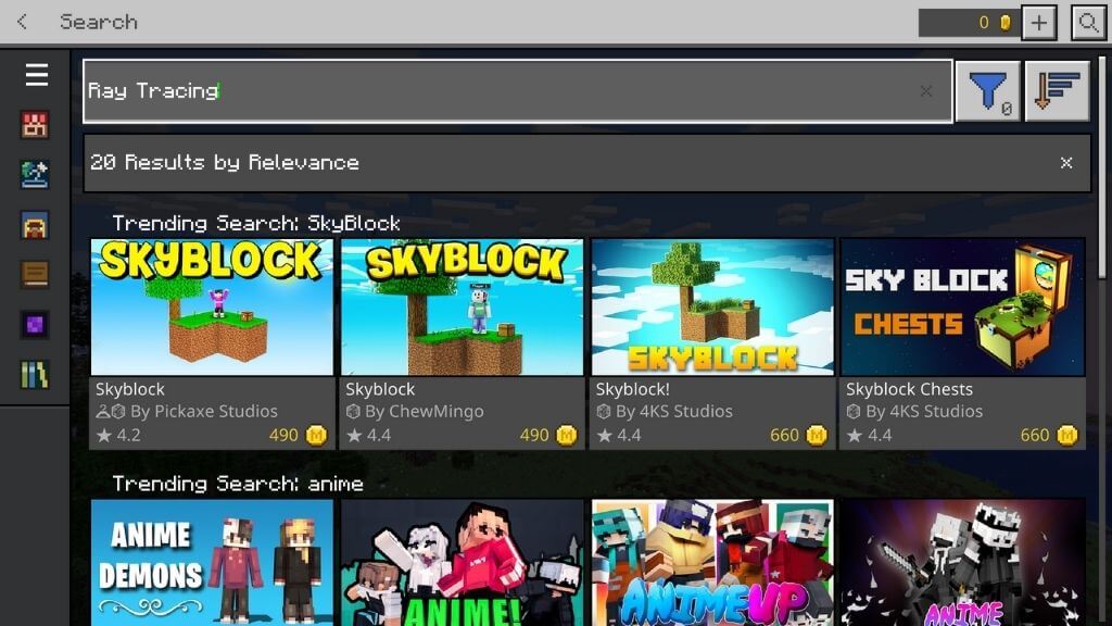 - 在市場中,您可以找到付費和免費內容。您還會發現兩種光線追踪包。選擇放大鏡打開搜索欄並在顯示的位置輸入“光線追踪”在此輸入搜索。