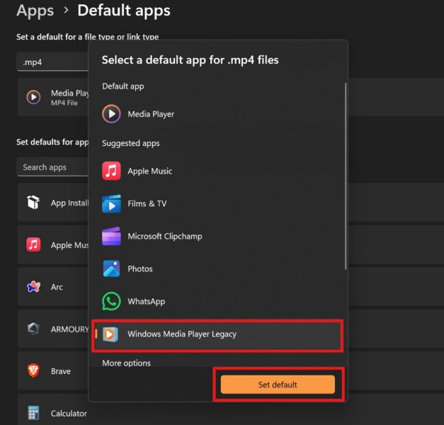 現在,如果您選擇實際上無法打開 MP4 文件的應用程序並單擊“始終”按鈕,則所選應用程序將被設置為打開 Windows 11 電腦或筆記本電腦上所有 MP4 文件的默認應用程序。因此,下次雙擊 MP4 文件時,它將使用您之前選擇的應用程序打開,而不會顯示“打開方式”嚮導。在這種情況下,您必須更改默認應用程序才能在 Windows 11 設備上打開該文件。