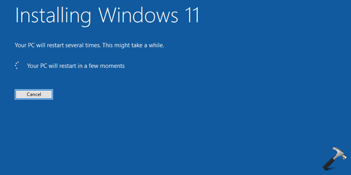 14.這將啟動安裝 Windows 11螢幕.在此階段,Windows 11 已安裝,因此請確保安裝完成。
