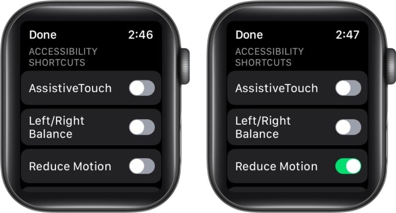此快捷方式會降低背景和某些動畫的透明度,從而增加文本和背景之間的對比度,並改善有視覺障礙的用戶的視覺效果。正如您所料,這還可以節省 Apple Watch 的電池壽命。