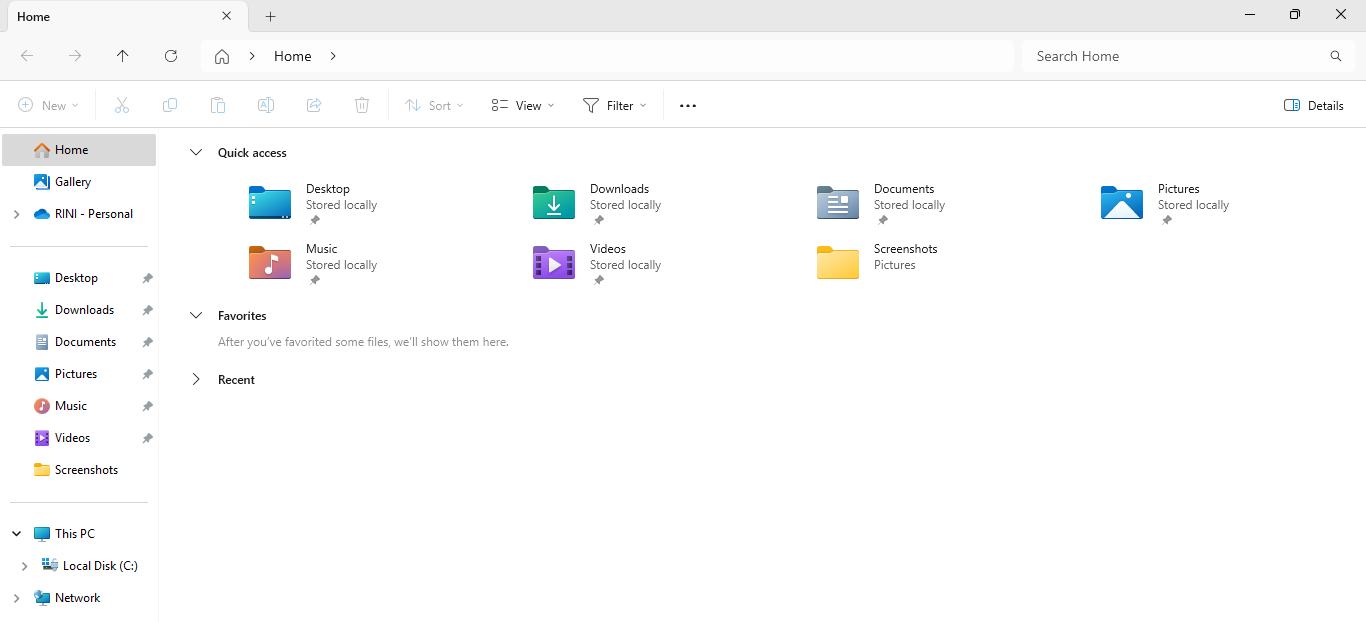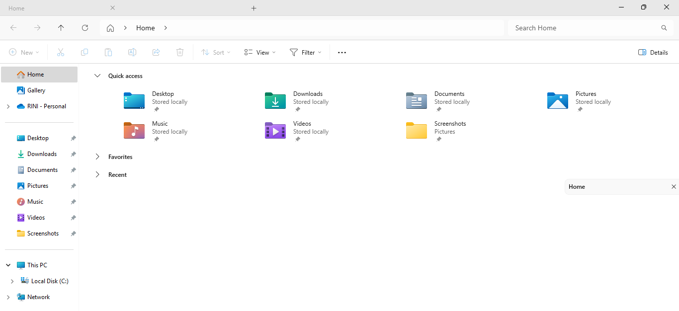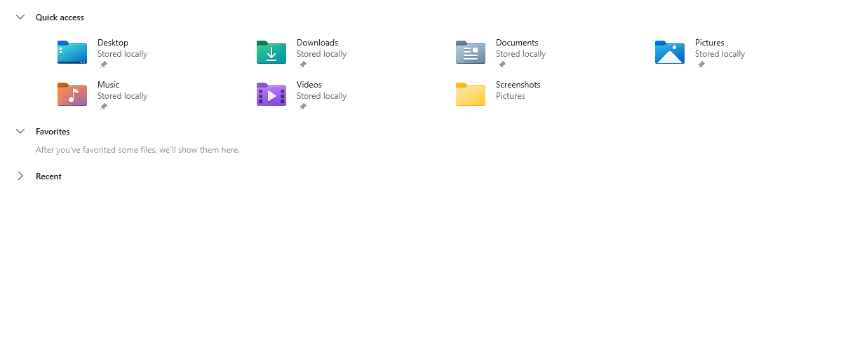文件資源管理器的主頁由三個主要部分組成 - 最近、快速訪問和收藏夾。因此,讓我們看看定制主頁的方法。