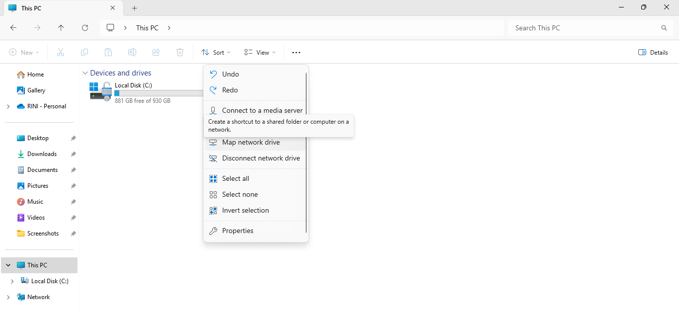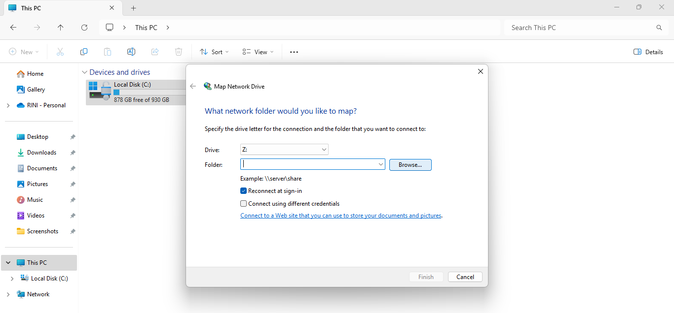 此外,為了使網絡文件夾可以作為驅動器輕鬆訪問,還可以進行映射。因此,請完成以下步驟來學習如何做同樣的事情。