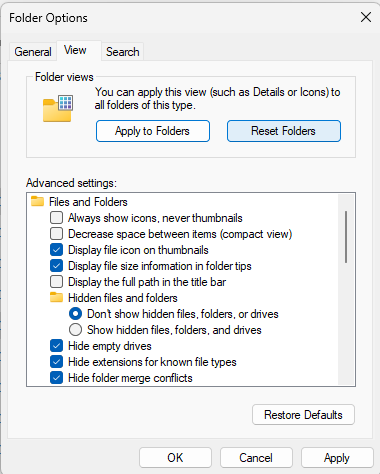 要將文件資源管理器中的文件夾視圖設置重置為默認值,請按照以下步驟操作: