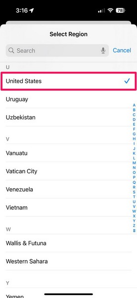 4.在這裡,請確保地區被設置為美國或該功能支持的任何其他地區。
