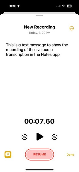 每當您開始在運行 iOS 18 的 iPhone 上的“備忘錄”應用或“語音備忘錄”應用中錄製語音備忘錄時,都會自動生成錄音的音頻轉錄。這樣,您不僅可以在錄製語音備忘錄時獲得音頻轉錄的實時視圖,還可以在完成錄製後查看文本。
