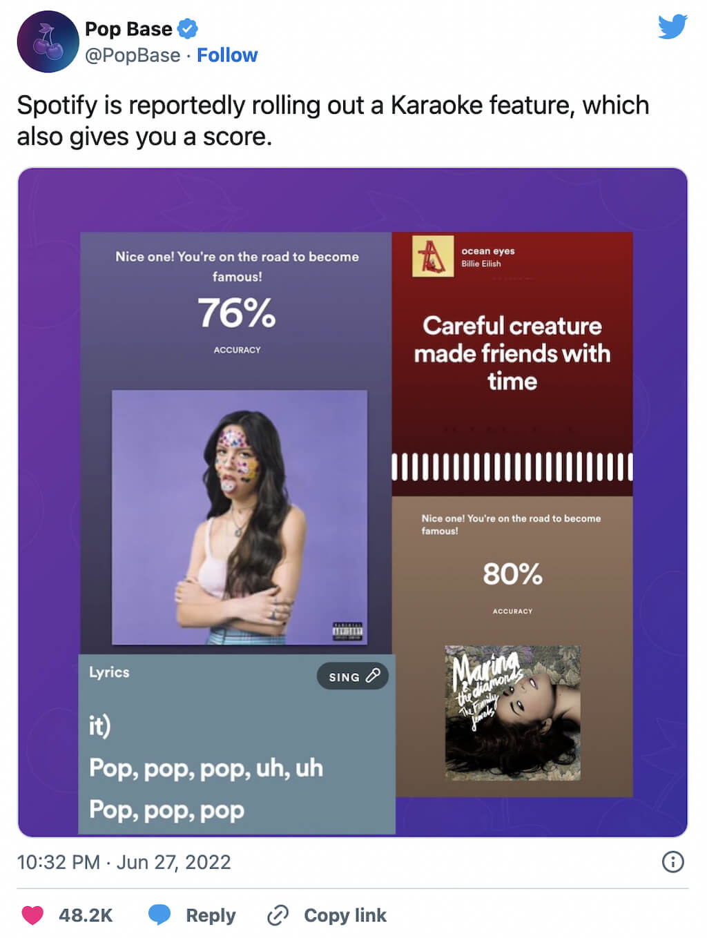 卡拉 OK 模式是關於用戶的積極參與,Spotify 似乎從其他社交媒體平台(例如 TikTok 和 Instagram)學到了這一趨勢。