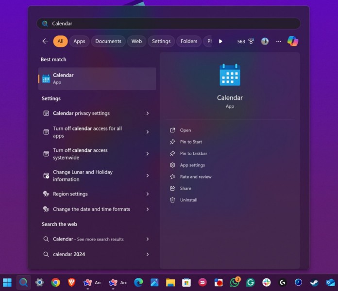 在 Windows 11 電腦或筆記本電腦上安裝日曆應用程序後,您應該能夠通過設備上的簡單窗口搜索找到它。