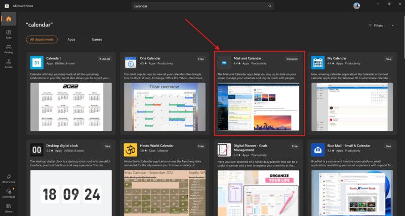 如果您的設備上已經安裝了日曆應用程序(使用 Windows + S 搜索它),則可以跳過此部分。如果不是,只需按照以下步驟在 Windows 11 設備上下載並安裝郵件和日曆應用程序即可: