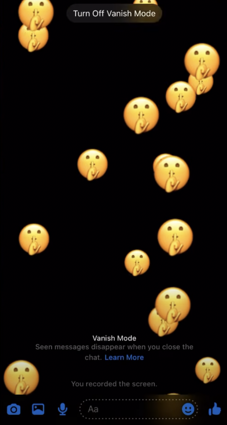 該消息可以包含文本、貼紙、表情符號、圖片、GIF、音頻或視頻。與常規消息不同,如果接收者嘗試截取消失模式聊天的屏幕截圖,Facebook 會立即通知您。