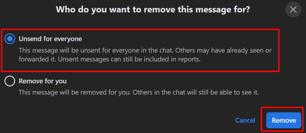 - 選擇向所有人取消捐款提示時選項,然後單擊或點擊消除按鈕。