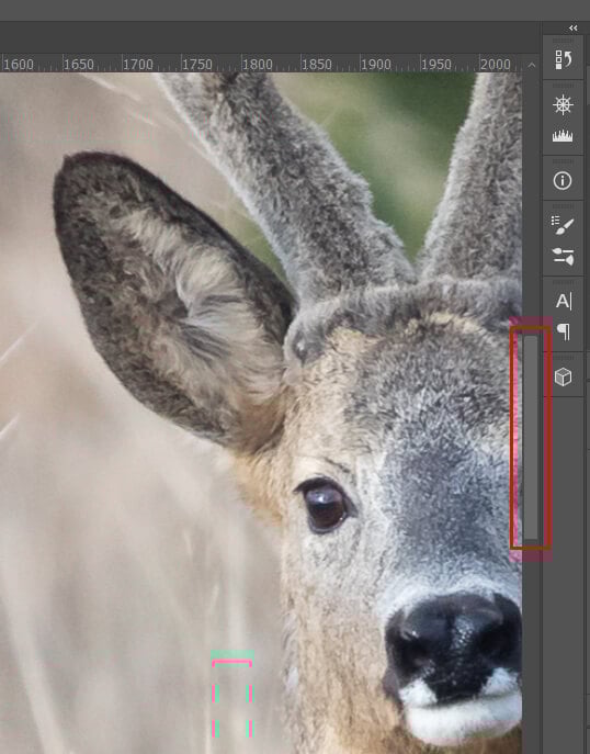 Photoshop 窗口底部邊緣還有另一個滾動條。使用它向左或向右滾動。