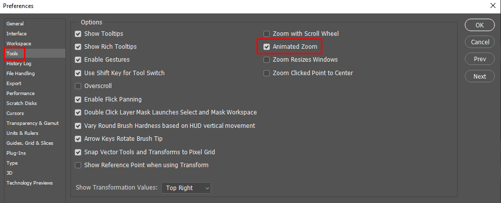 現在,您不必每次都單擊來放大圖像。只需單擊一次並按住,直到達到您需要的放大百分比。但是,並非所有顯卡都支持動畫縮放功能。檢查您的 PC 顯卡是否與您正在運行的 Photoshop 版本兼容。