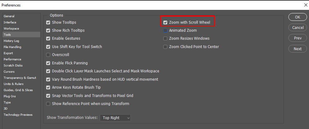 另一種快速放大和縮小的方法是使用鼠標上的滾輪。要啟用此功能,您必須: