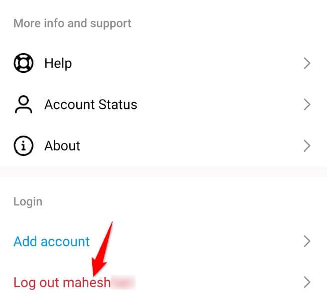 如果您的手機仍然無法播放 Instagram 快拍的音頻,則您在應用程序中的登錄會話可能存在問題。您可以通過在應用程序中註銷並重新登錄您的帳戶來解決這些與登錄相關的問題。