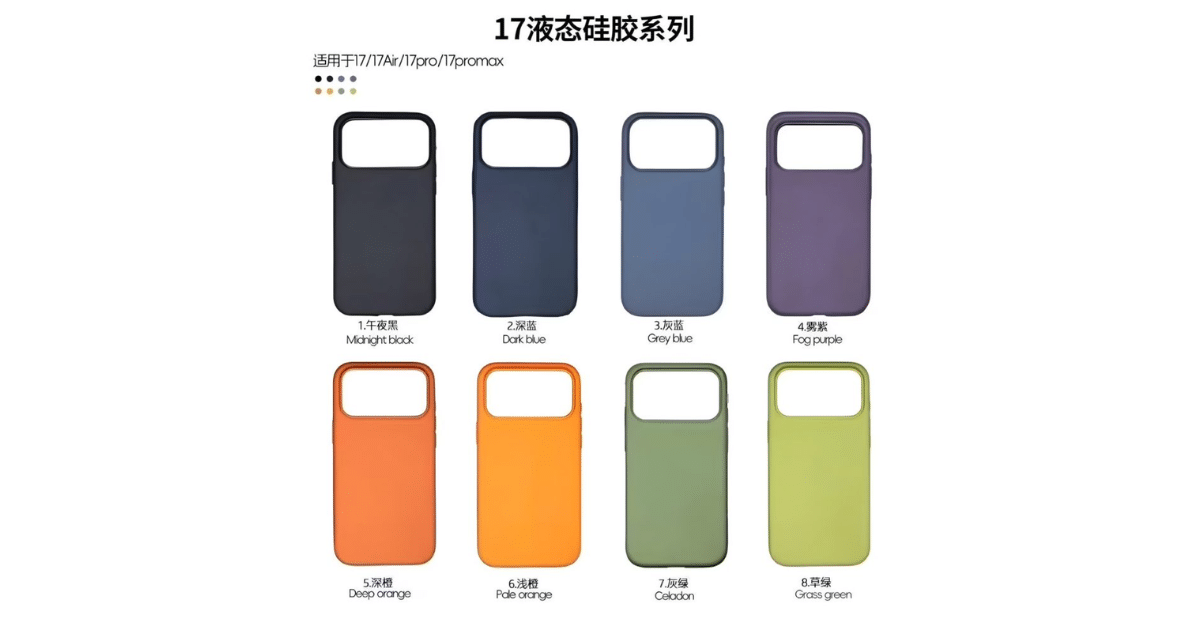 據爆料,iPhone 17 液態矽膠殼將有八種官方顏色可供選擇:深橙、淡橙、草綠、青瓷、霧紫、灰藍、深藍和午夜黑。該調色板將充滿活力的色調與更為柔和的經典色調相結合,提供了一種適合喜歡大膽色調和喜歡低調色調的用戶的組合。