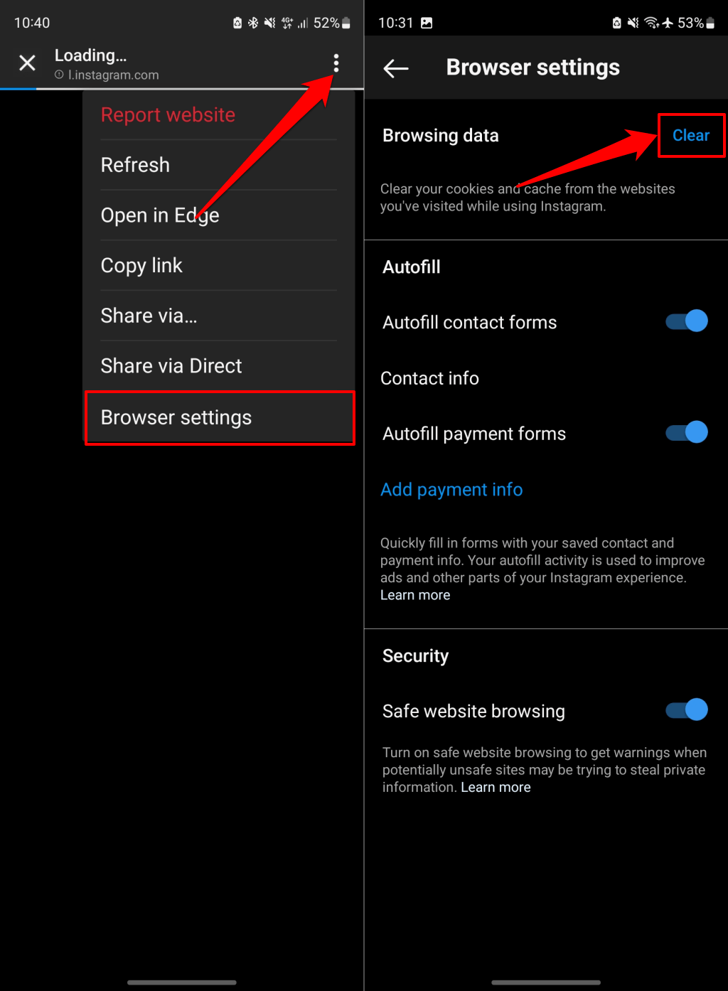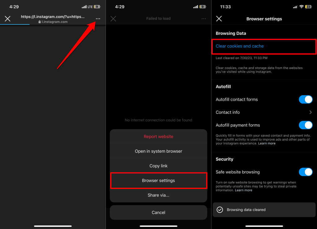 Instagram 保存您在應用內瀏覽器中訪問的網站或鏈接的數據。如果瀏覽器的數據過度累積或損壞,Instagram 可能無法打開鏈接。清除 Instagram 的瀏覽器數據可能會讓應用程序再次打開網站鏈接。