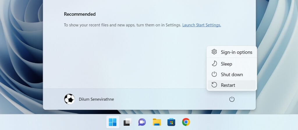 要重新啟動您的PC,請打開開始菜單,選擇力量按鈕,然後選擇重新啟動。如果您看到更新和重新啟動選項,選擇該選項。