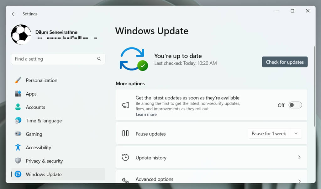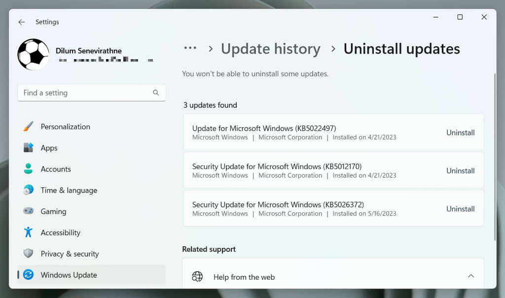 如果沒有新更新,請嘗試刪除最新的非安全更新。在Windows 11中: