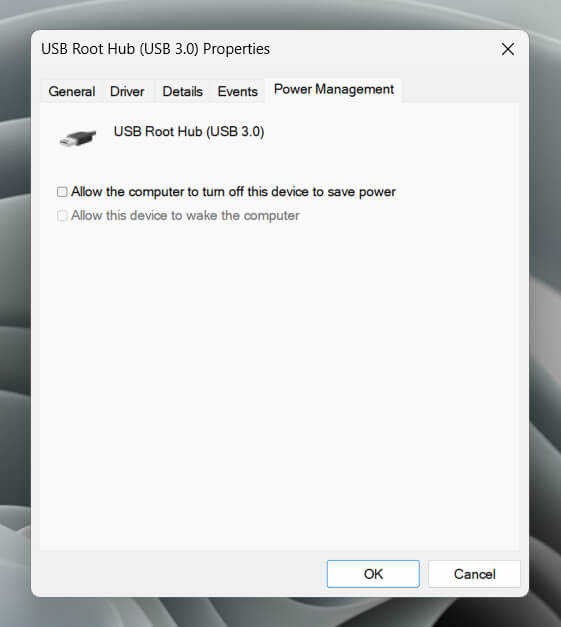 - 禁用旁邊的盒子允許計算機關閉此設備以節省電源。