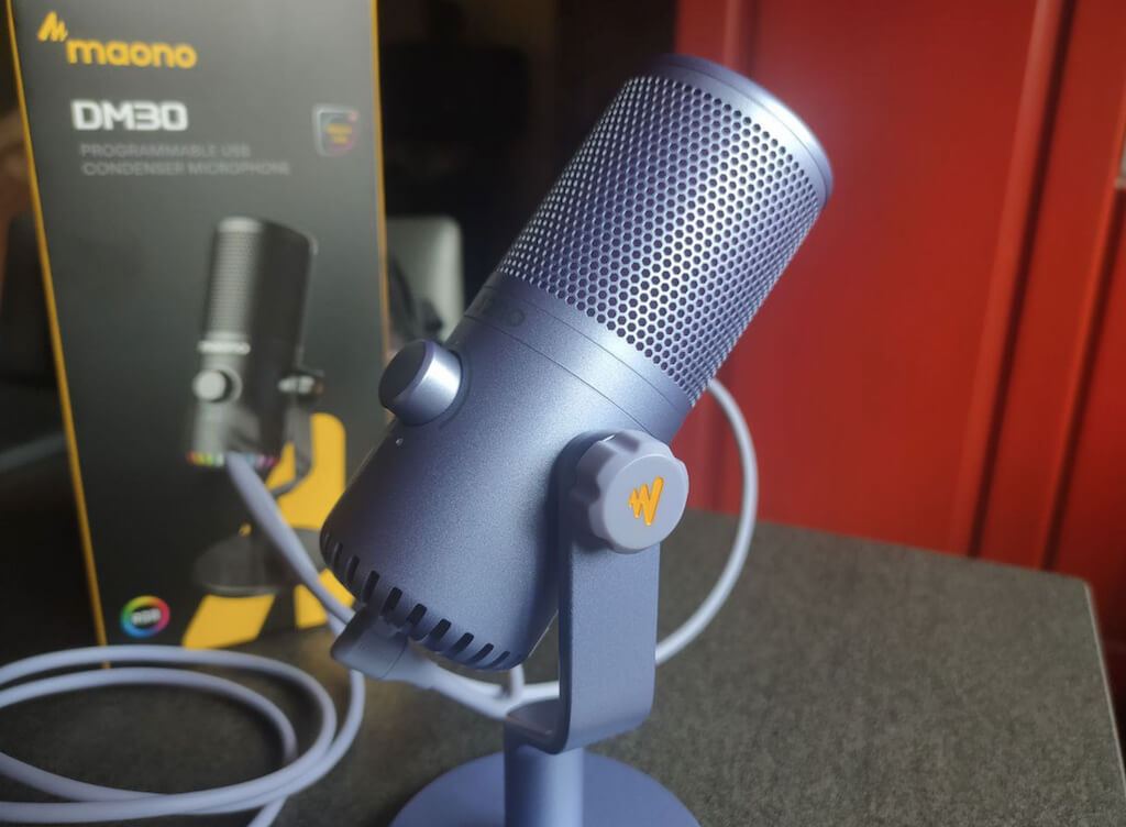 通常,您不會對預算麥克風的設計和製造質量抱有太多期望。您會驚喜地發現,Maano DM30 反其道而行之,真正專注於這兩個領域。雖然麥克風遵循標準的簡單形狀,但 Maono 設法讓它看起來時尚,而且我敢說,很古怪,特別是如果你選擇一種彩色選項 - 白色、粉色或紫色(我有紫色的 DM30 進行測試)。