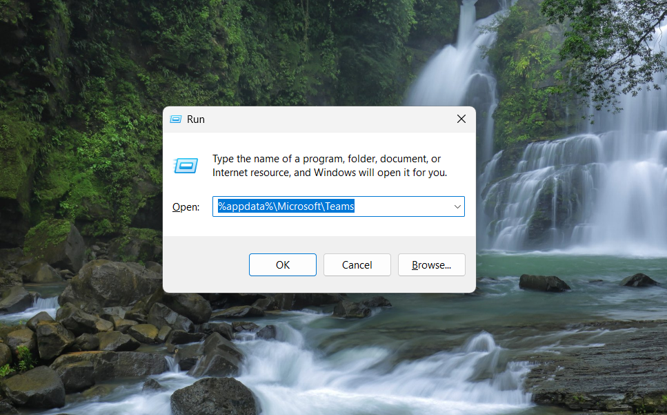 %appdata%MicrosoftTeams,然後按 Enter 鍵。 - 刪除該目錄中的文件和文件夾。