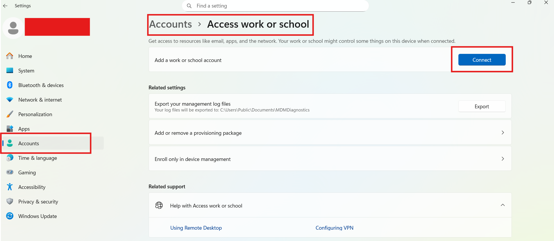 %localappdata%PackagesMicrosoft.AAD.BrokerPlugin_cw5n1h2txyewy。 - 打開“設置”,轉到“帳戶”,然後轉到“訪問工作單位或學校”。斷開所有條目的連接,然後單擊“連接”以再次添加您的帳戶。