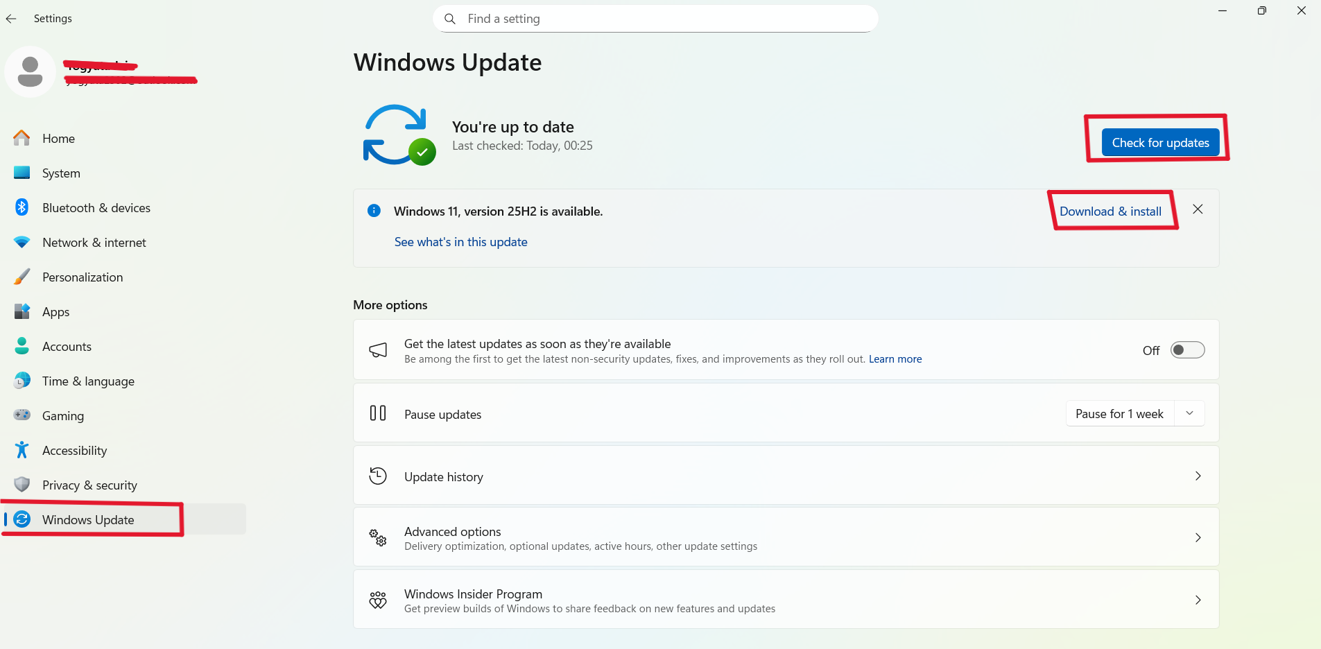 - 安裝可用更新,然後重新啟動並重試 Teams。