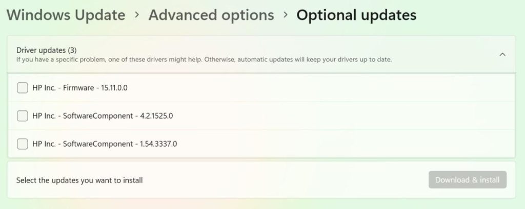 第4步:屏幕將顯示更新列表。這下載並安裝按鈕位於每個更新旁邊。