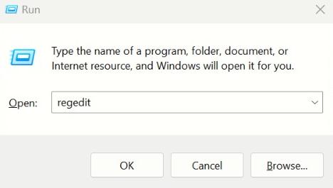 步驟2: 打進入打字後註冊表編輯器在運行中。