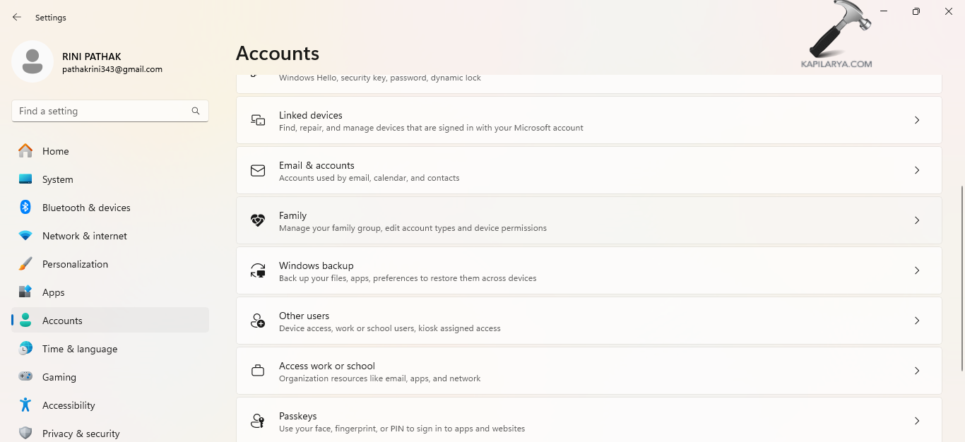 步驟2-接下來,轉到“設置”>“帳戶”>“家庭和其他用戶”。