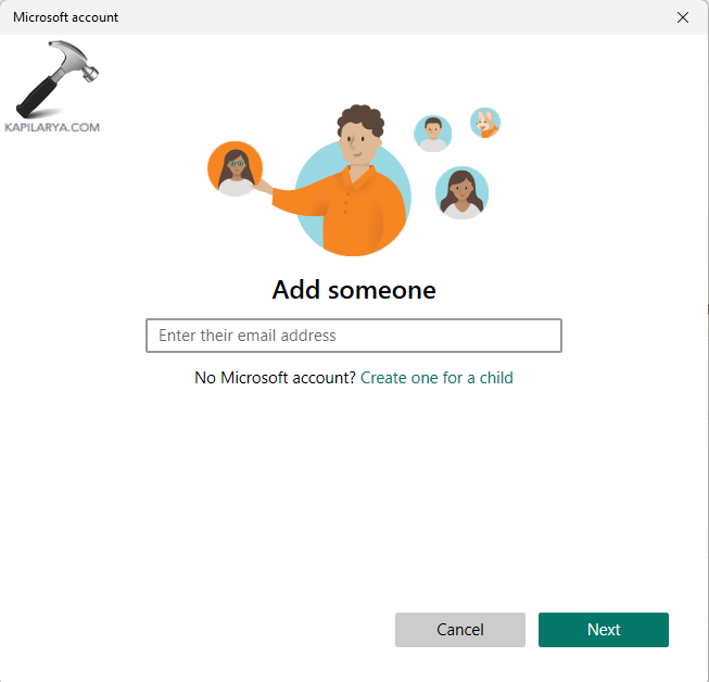 步驟 4-此外,按照提示設置新用戶帳戶。但是,如果沒有 Microsoft 帳戶詳細信息,請選擇“我沒有此人的登錄信息”>“添加沒有 Microsoft 帳戶的用戶”。