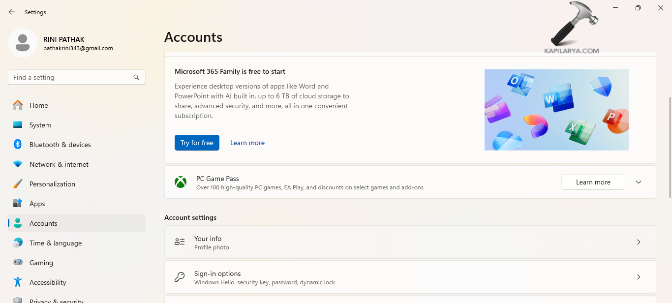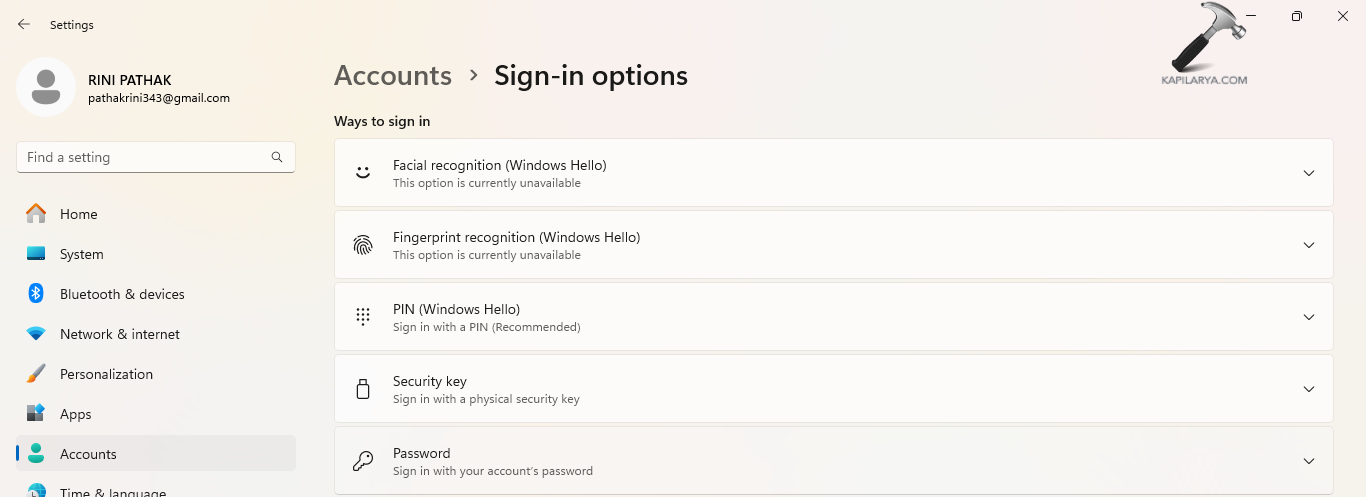 步驟1-首先,轉到“設置”>“帳戶”>“登錄選項”。