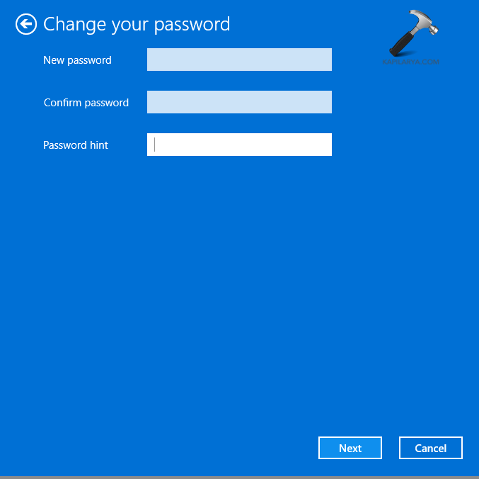 步驟2-現在,在“密碼”部分下方,選擇“更改”並檢查提示的可用性。但是,如果提示不存在,請創建一個新提示並保存。