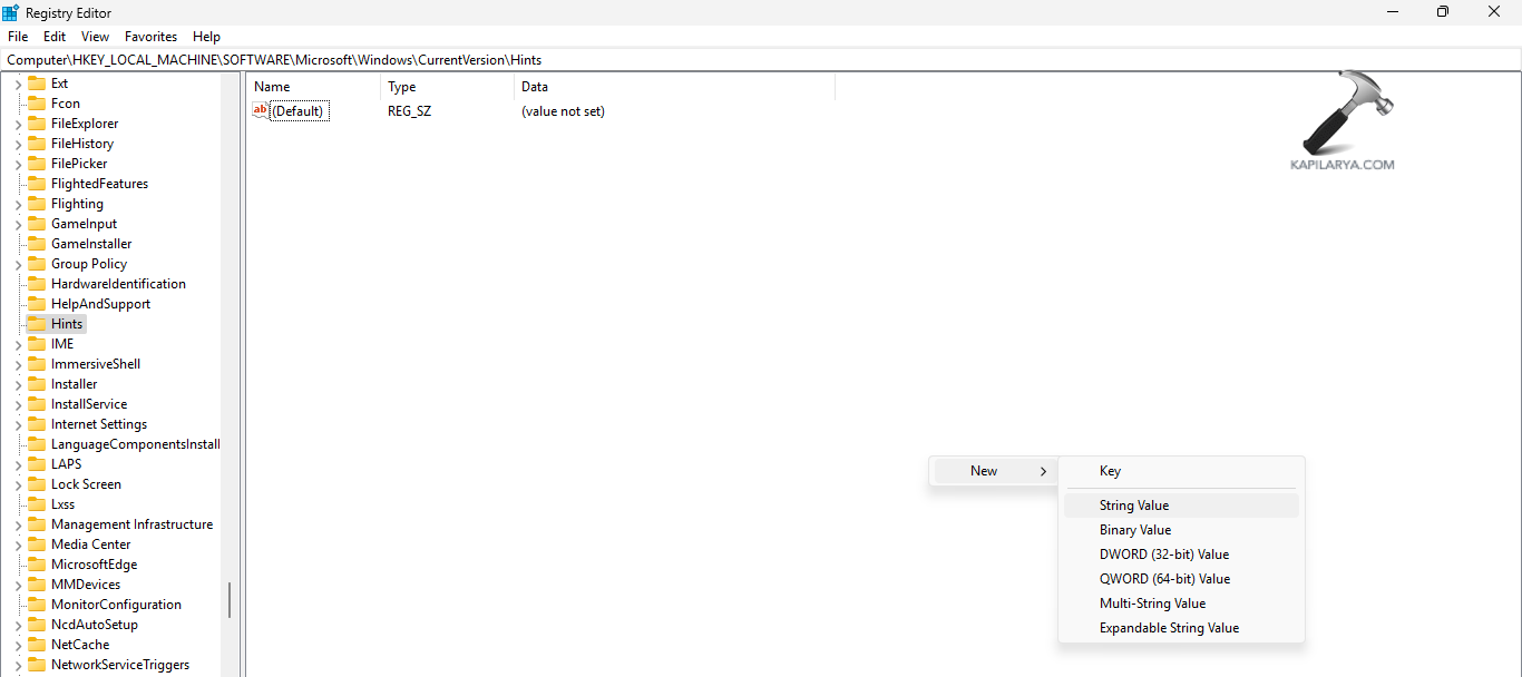 HKEY_LOCAL_MACHINESOFTWAREMicrosoftWindowsCurrentVersionHints