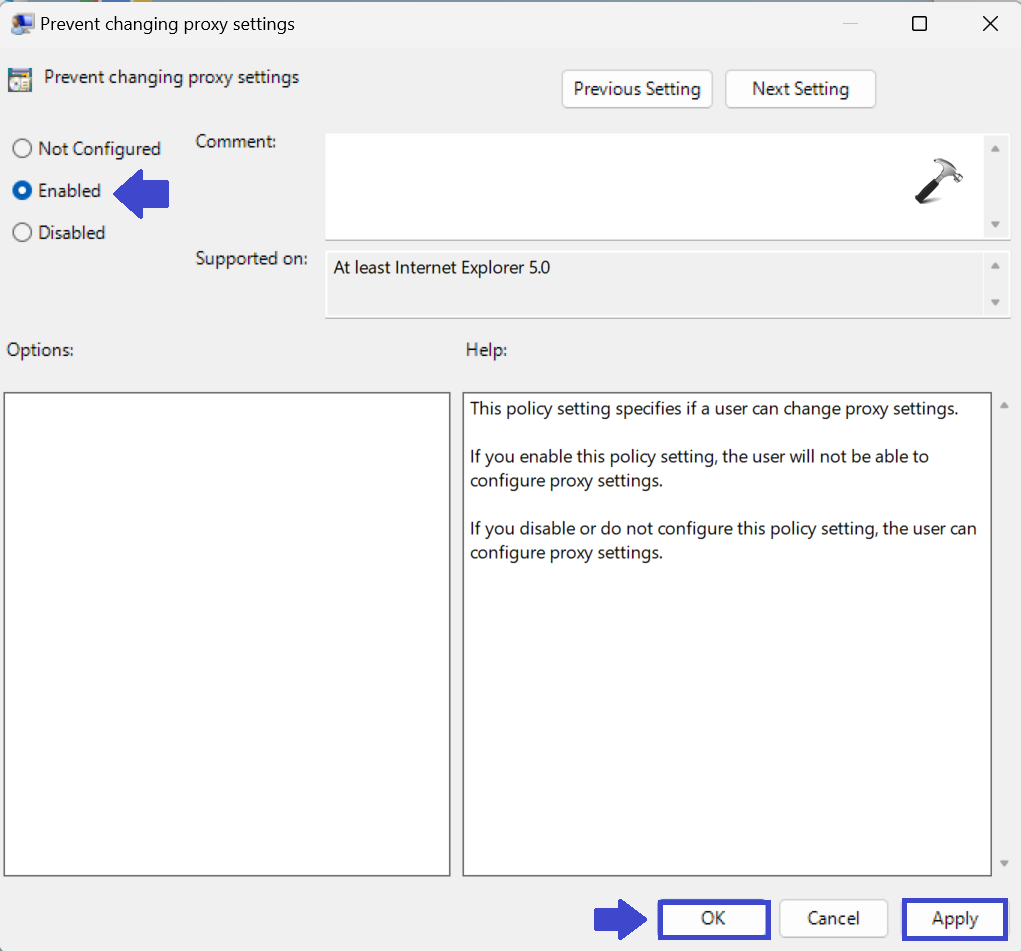 方法 1:阻止用戶使用本地組策略編輯器更改代理設置