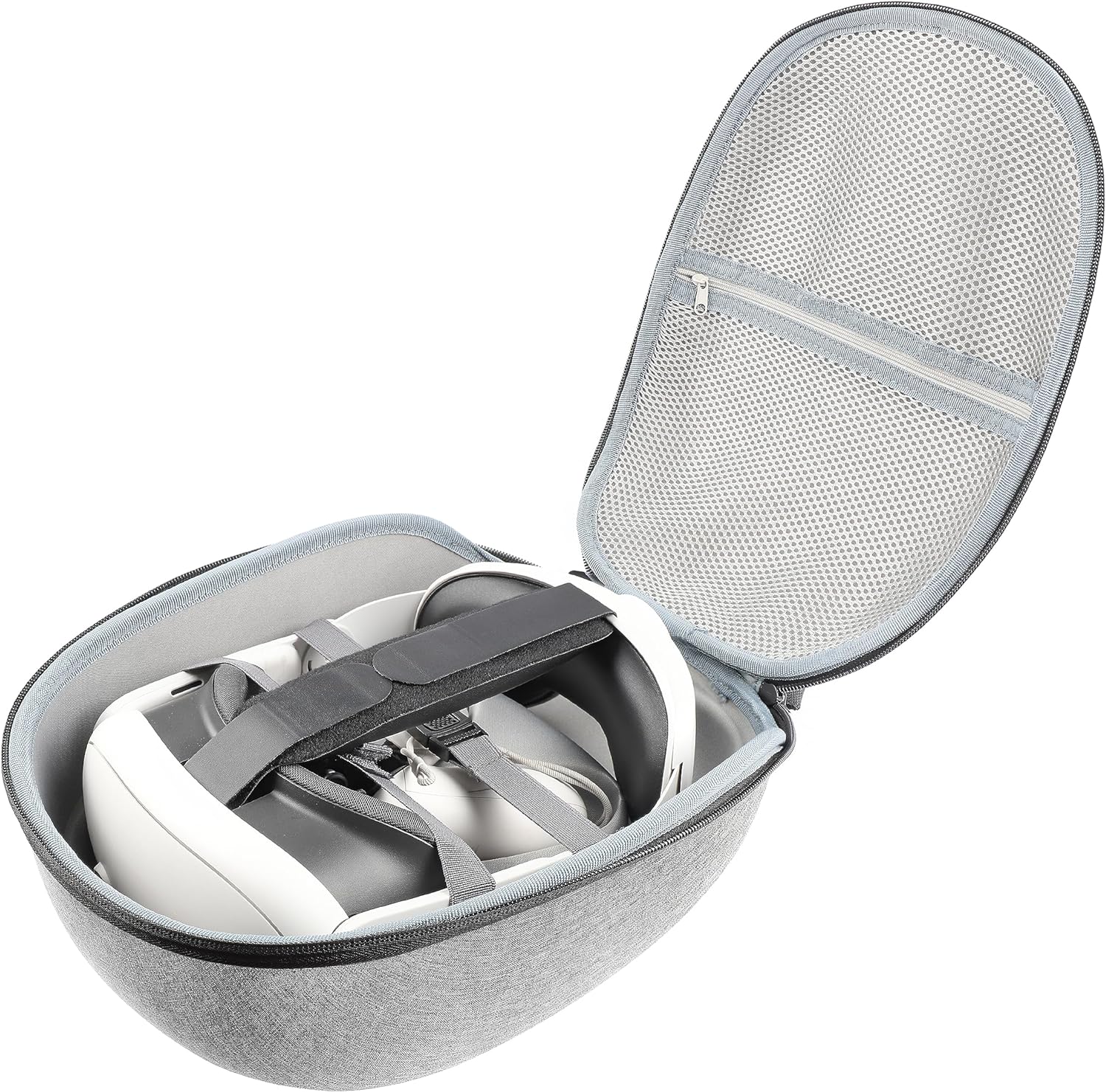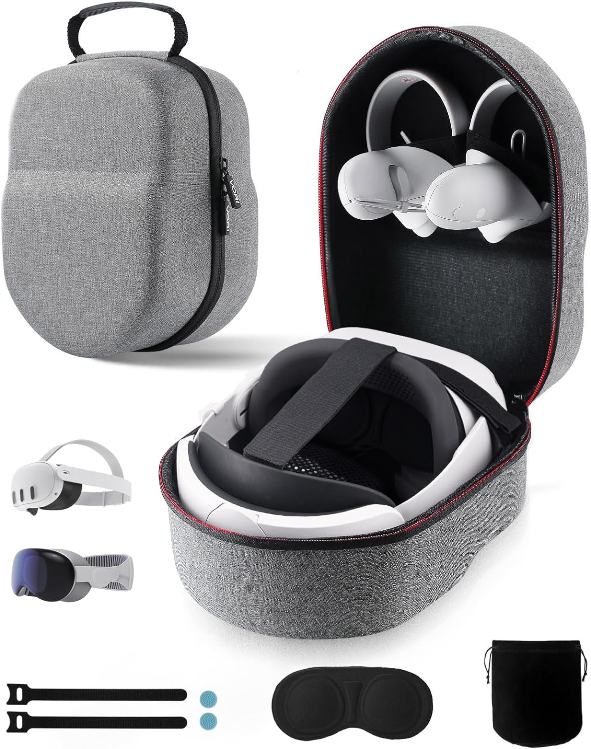 這款包是一款時尚便攜的選擇,擁有用於保護的硬質 EVA 外殼、用於增加安全性的柔軟毛絨襯裡、用於存放配件的網狀口袋以及用於安全存放的雙拉鍊。它與各種 VR 耳機兼容,在保護性、便利性和經濟性之間提供了良好的平衡。