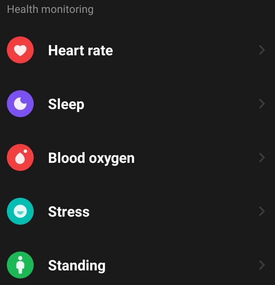 您還可以調整健康監測通過應用程序進行設置,包括心率、睡眠、血氧、壓力跟踪等。如果您不喜歡使用單獨的應用程序來跟踪您的經期,您現在可以使用小米健身應用程序來幫您完成。另外,還有一個選項可以啟用空閒警報——如果手錶檢測到您超過一個小時沒有移動,就會振動並敦促您移動。
