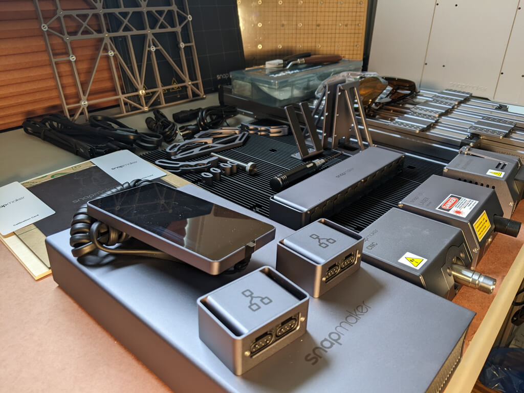 Snapmaker 2.0 裝在一個又大又重的盒子裡,因為零件清單很長,包括: