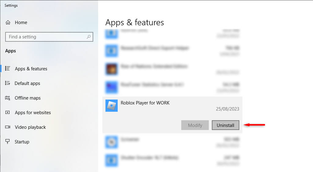 - 查找並選擇羅布樂思在應用程序列表中。選擇解除安裝。