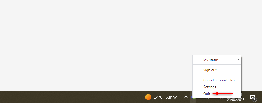 - 關閉其他應用程序。關閉任何其他可能干擾麥克風的語音聊天應用程序,例如 Discord、Microsoft Teams 或 Skype。為此,請右鍵單擊圖標托盤中的圖標,然後選擇辭職。