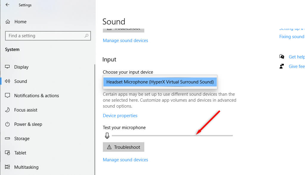 - 對著麥克風講話並觀察“測試麥克風”下的音量級別。您可能需要選擇測試在輸入設置下。