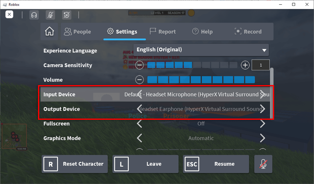 麥克風無法工作的另一個潛在原因是 Roblox 本身的遊戲設置不正確。要檢查這一點: