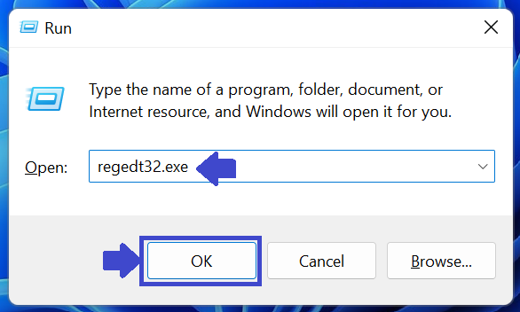 步驟1:按 Windows + R。鍵入 Regedt32.exe。然後出現提示框時單擊“是”。