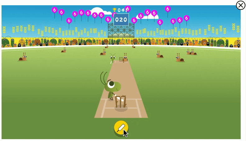 另一款流行的 Google Doodle 遊戲是在有趣的板球遊戲中蟋蟀與蝸牛的較量。