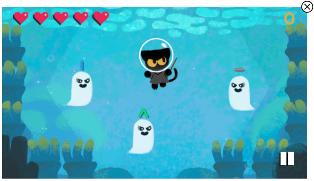 再一次,你是一隻被鬼襲擊的貓。使用鼠標或觸摸板繪製鬼魂頭上顯示的符號來擊敗它們。每次成功擊倒食屍鬼,你都會獲得快樂的喵喵叫聲。